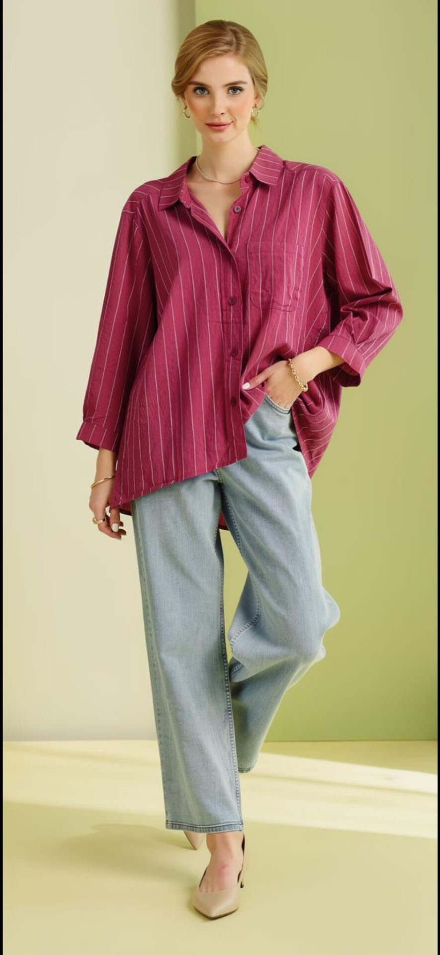 Boyu 72cm, kol boyu 52cm, over size standart beden, onden düğmeli, kolu manşetli bordo gömlek.