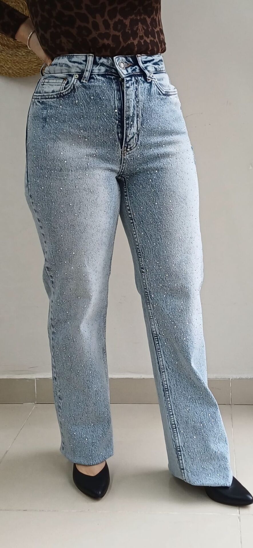 %100 Pamuk koton taşlı denim pantolon
