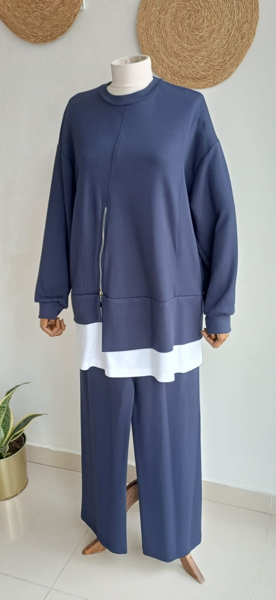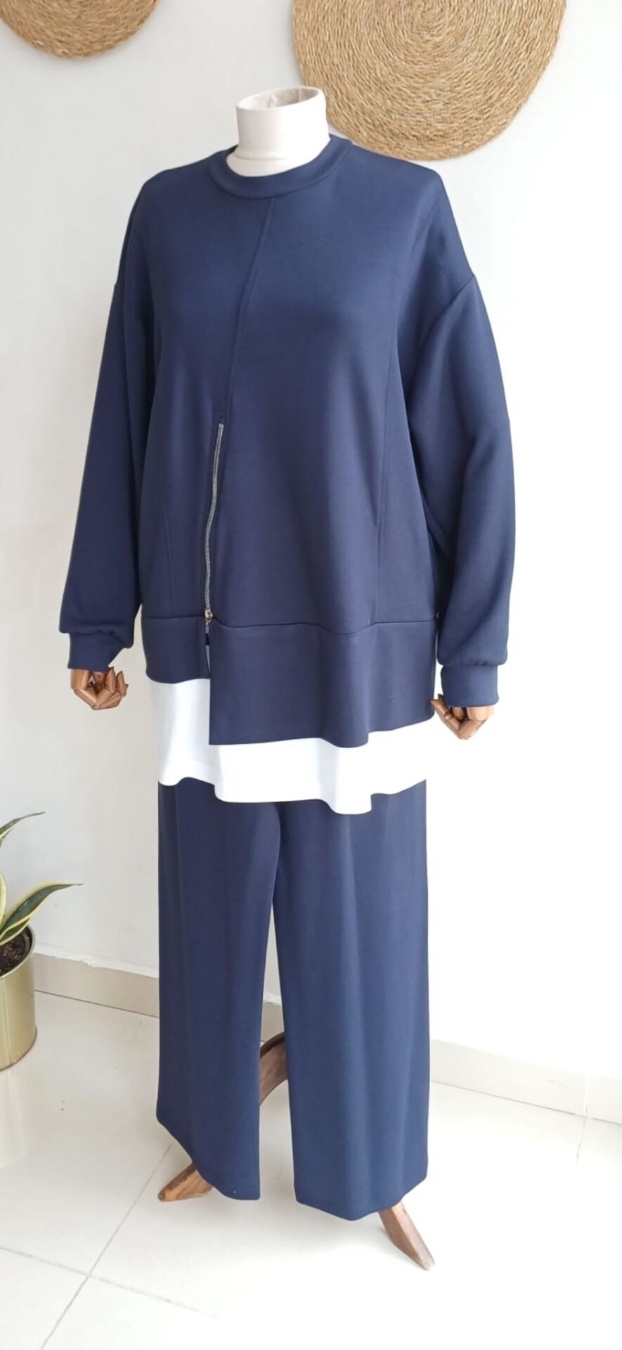 Lacivert pantolon lastikli %55 viscose %40 polyester %5 elastan