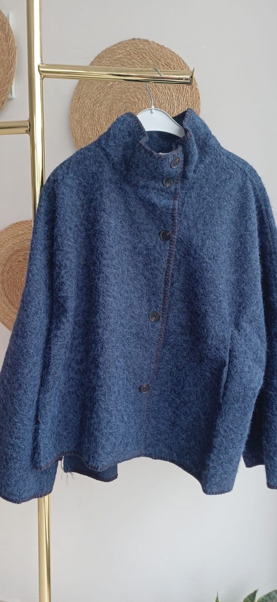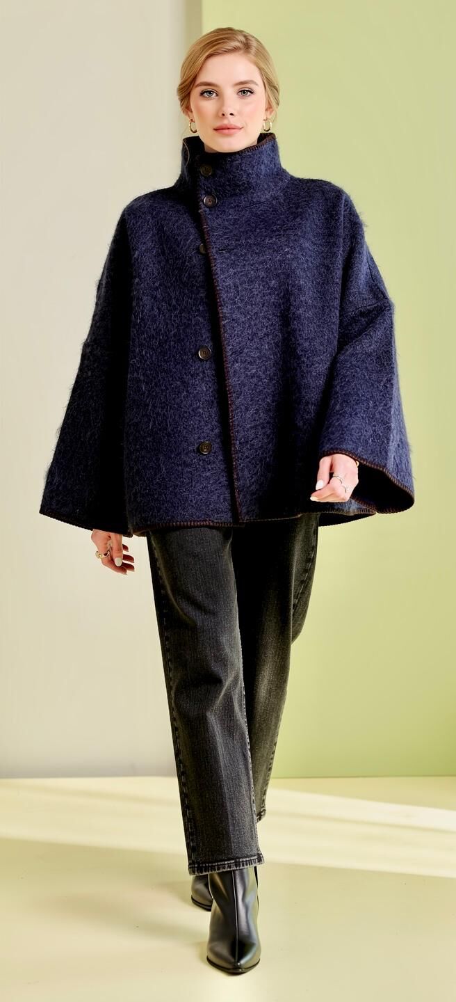 Dügmeli lacivert , astarsız panço boy 70 cm kol 38 cm % 70 polyester % 38 pamuk