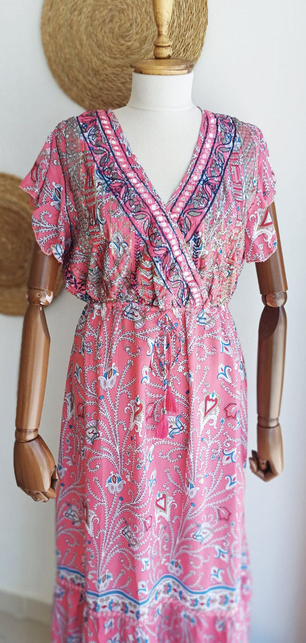 Boy:140 cm, Kol : 13 cm fırfır kollu, beli lastikli astarsız ve standart beden elbisedir.