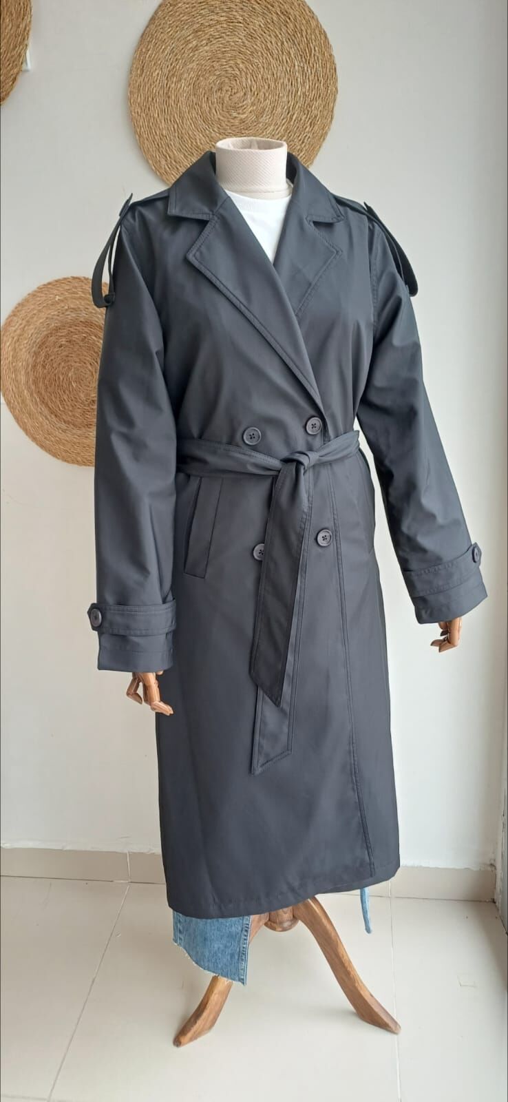 Siyah trençkot boy116 kol boyu62cm