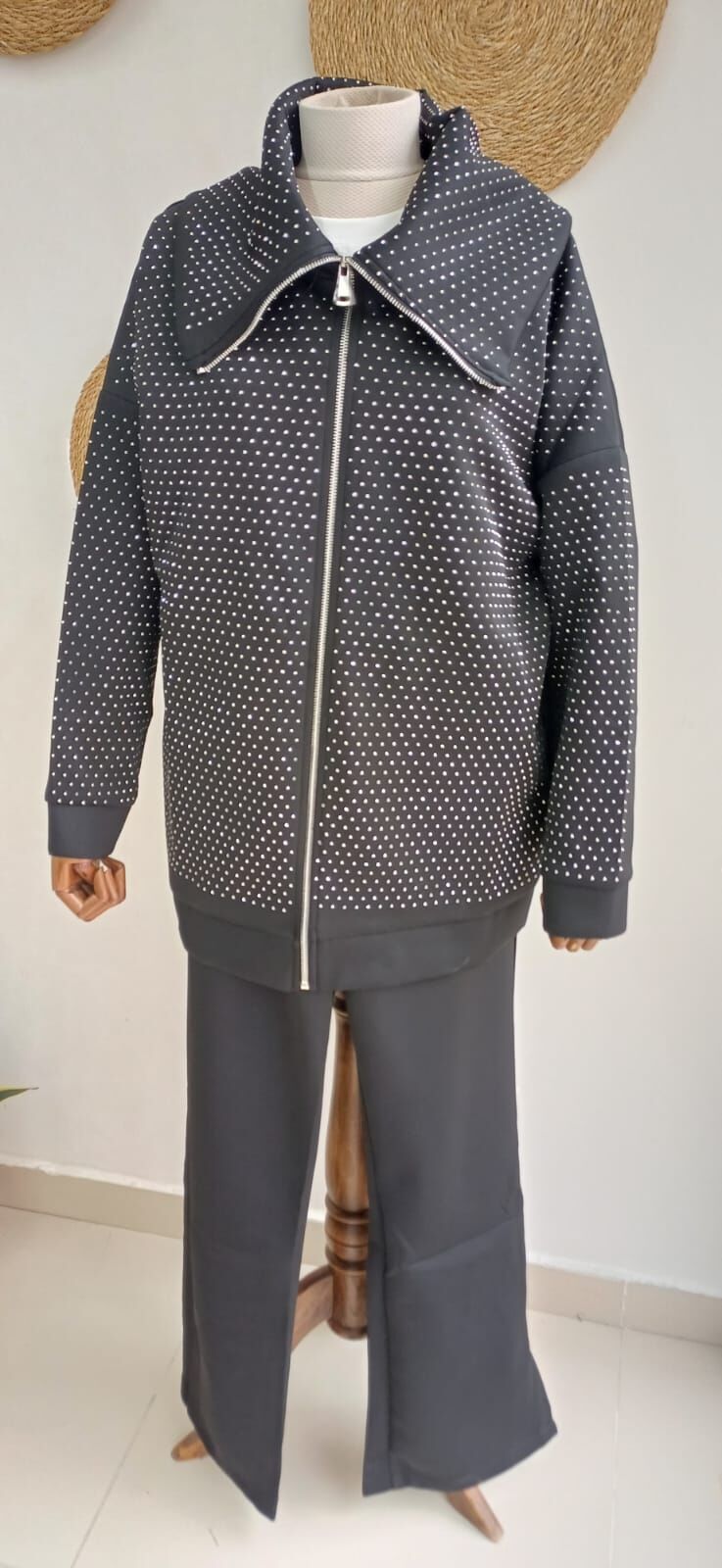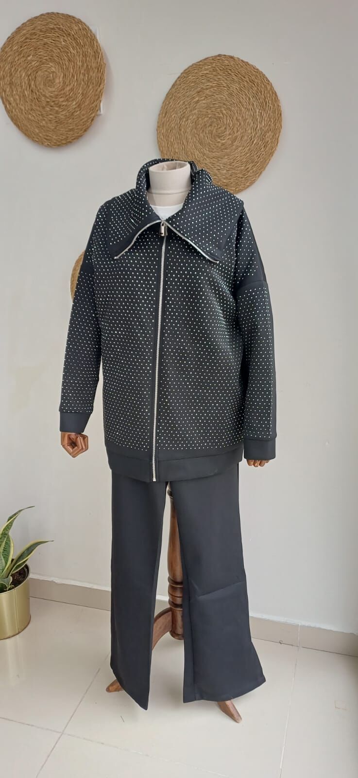 Taşlı takım %95 cotton %5 likra sukuba kumaş önden fermuarlı pantolon beli lastikli